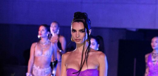 Emily Ratajkowski, 30, could not have looked more toned at the Savage X Fenty fashion show. The model put her best feet (and legs, and abs) forward while rocking a bright purple metallic lingerie set on the runway.