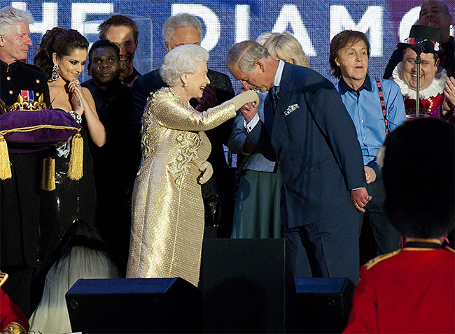 Prince Charles publicly greeted his mum in June 2012 after the spectacular Jubilee concert at Buckingham Palace, where Tom Jones, Paul McCartney and other singers took to the stage.