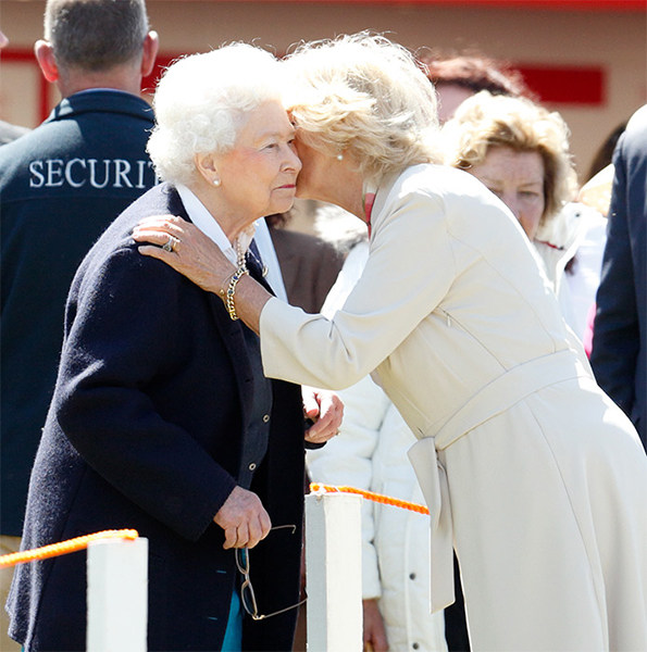 Daughter-in-law Camilla greets the monarch at the Royal Windsor Horse Show in May 2015.