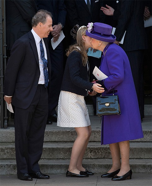 The Queen is greeted by Lady Margarita Armstrong-Jones – the only granddaughter of Princess Margaret and the daughter of David Armstrong-Jones.