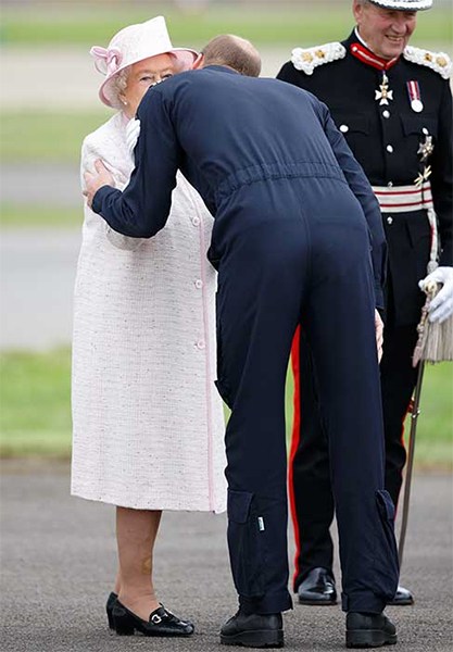 The Duke of Cambridge was spotted kissing his grandmother, the Queen goodbye after she opened the new East Anglian Air Ambulance base at Cambridge Airport in July 2016.