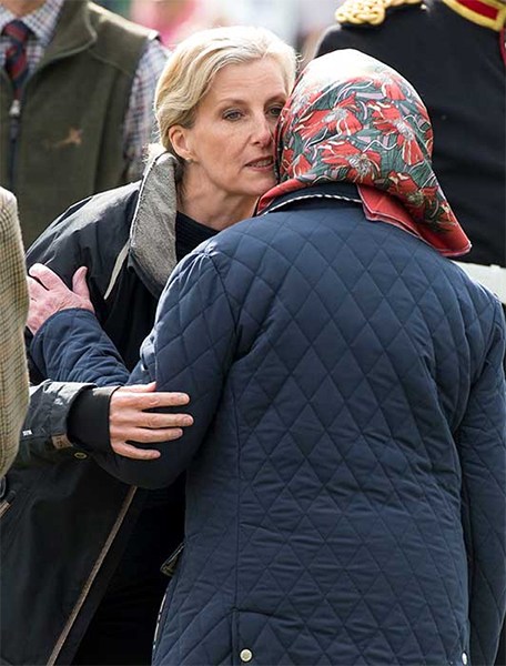 The Queen is close to her daughter-in-law, the Countess of Wessex, and Sophie embraced her mother-in-law with a kiss on the cheek when they met at the Royal Windsor Horse Show in Windsor in 2015.