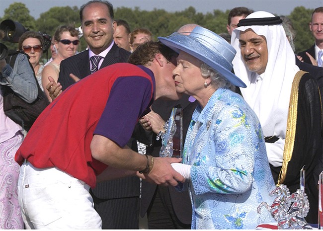 Her Majesty received a kiss from her grandson Prince William in July 2004, after William competed in a polo match. Prince Charles also took part and was similarly pictured greeting his mother.