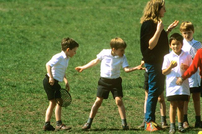 Cheeky Prince William gave his teacher a quick pinch while playing around with one of his friends at school. The royal was taking part in a tennis lesson when he decided to play a bit of a prank on his unsuspecting teacher, much to the amusement of his little mate!