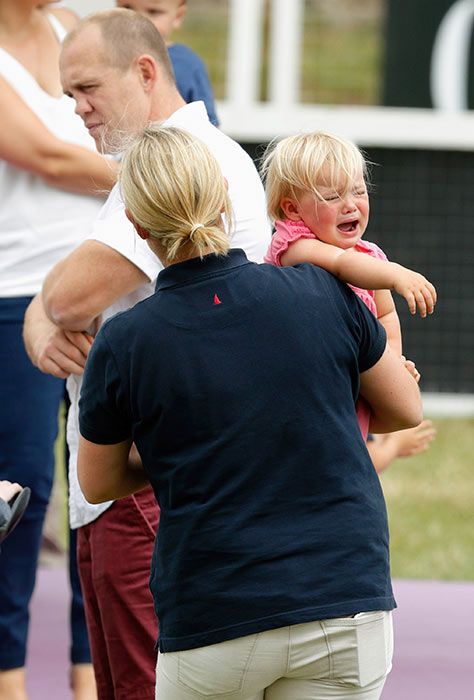 Not even royal youngsters can be expected to be happy all of the time! For whatever reason, Mia Tindall was snapped not looking exactly thrilled when her mum, Zara, carried her towards her dad, Mike. Reaching out for something, we’re guessing that the little royal just didn’t want to stop playing!