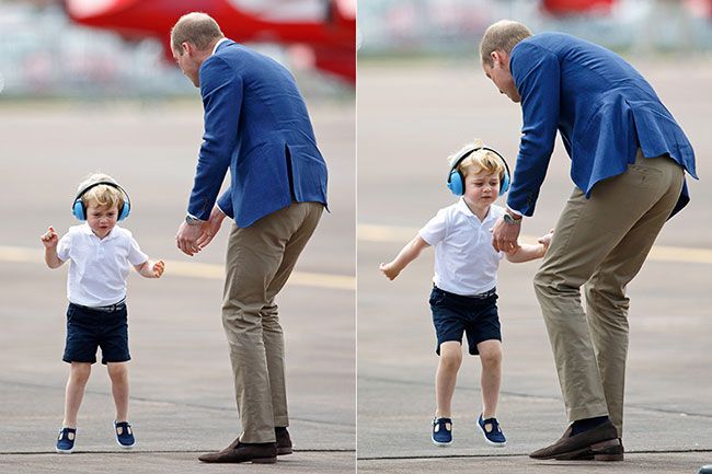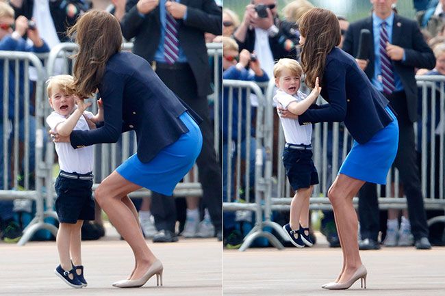 Although Prince George loves looking at helicopters, he wasn’t having any of it when he went to visit a Royal Airforce Station in Gloucestershire, England, with his parents. The Cambridge family toured the station at the event, which was aimed at getting young people involved with aviation, when Prince George broke down in tears and needed his mum to give him a cuddle!