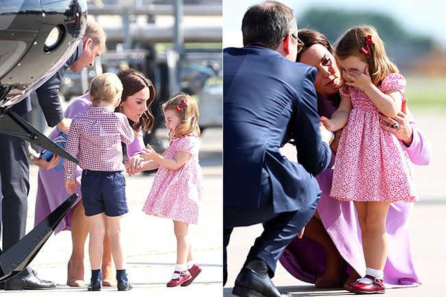 Princess Charlotte seemed like she needed a nap after she fell over at Hamburg Airport and burst into tears. The Cambridge family paid a visit to the airport to view helicopters, but it was all a bit much for the little Princess who was picked up and comforted by her mum.