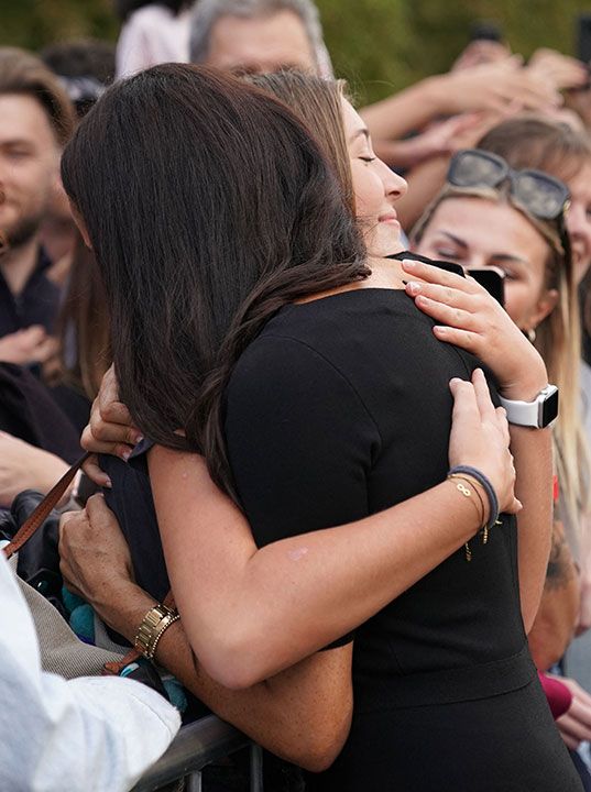 Meghan has always described herself as a “hugger” and there have been so many touching moments with royal fans over the years, but one that stands out in particular was when the Duchess comforted a young woman who came to Windsor to pay her respects to the late Queen Elizabeth II in September 2022.
