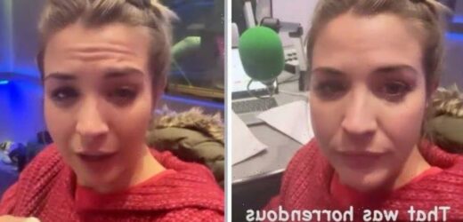 Gemma Atkinson, 37, had tears on her face after an unfortunate live on-air blunder. She took to her Instagram account earlier today, to show fans her ‘horrendous’ error while on the radio.