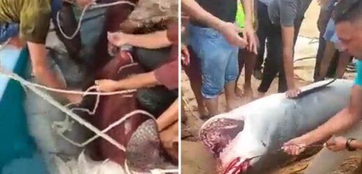Videos popped up late Thursday showing the massive animal brought to shore by heavy-duty nets … with several boats used in the effort. A statement from the Ministry of Environment confirmed they caught the shark, though beaches are to remain closed until Sunday to make sure nothing similar happens.
