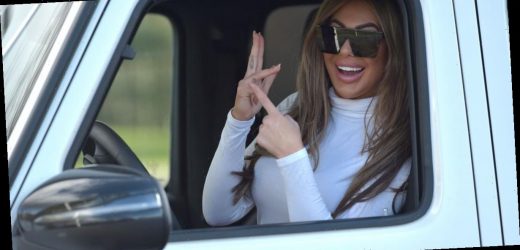 At one point, the Geordie Shore star beamed as she sat in a vehicle and pointed at the fact there was no ring on her finger.