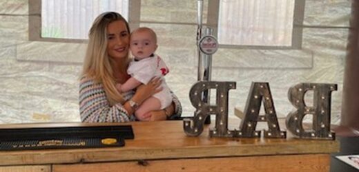 Dani was seen smiling in another sweet image while holding her pride and joy in her hands behind the counter of her pop up bar.