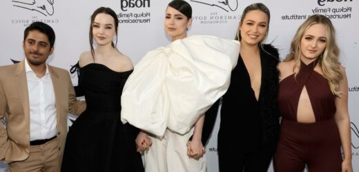 Sophie Reynolds, Paulina Char, Sofia Carson, Dove Cameron and Karan Brar pose for a group photo while attending the inaugural The Cameron Boyce Foundation’s Cam For a Cause Gala held at Soho Warehouse on Wednesday (May 18) in Los Angeles.