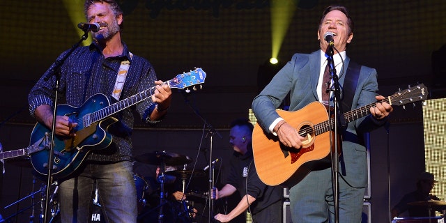 John Schneider and Tom Wopat perform onstage during the Agency Group Party at at IEBA Conference Day 3 at the War Memorial Auditorium on October 9, 2012 in Nashville, Tennessee.