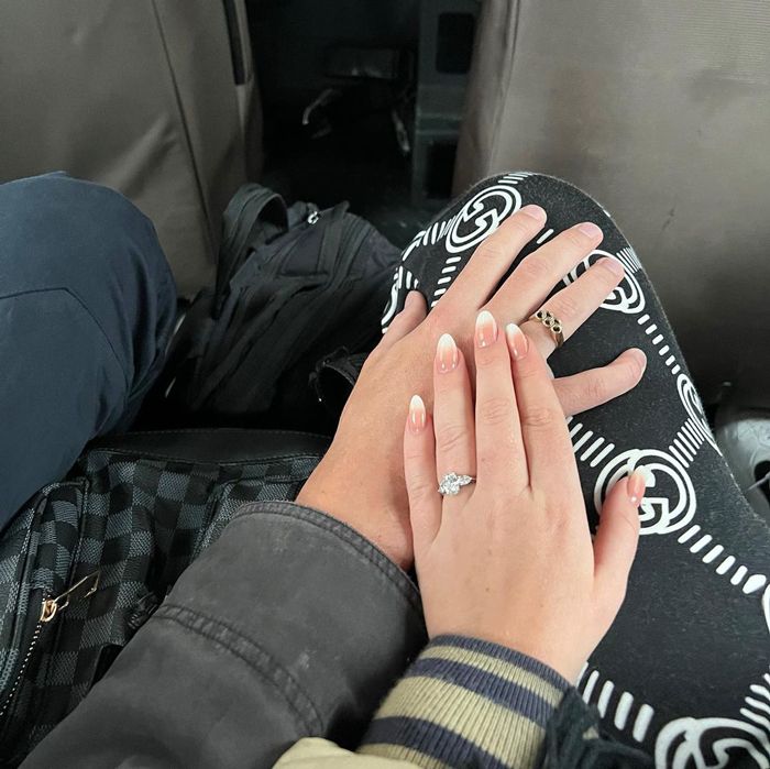 “From the photos, it looks like the centre diamond is approximately 2.50 carats, and the pear diamonds surrounding it are about 0.50. The ring could be worth an estimated £70k+,” he added, before pointing out its similarities to Gwen Stefani and Meghan Markle’s rocks.
