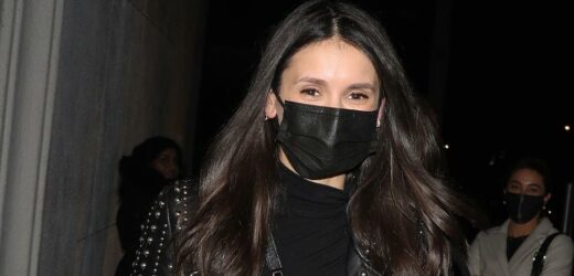 Nina Dobrev matches her black mask to a black biker jacket while out to dinner on Tuesday night (February 1) in Los Angeles.