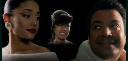 Jimmy Fallon has teamed up with Ariana Grande and Megan Thee Stallion on the holiday-themed “It Was A… (Masked Christmas).”