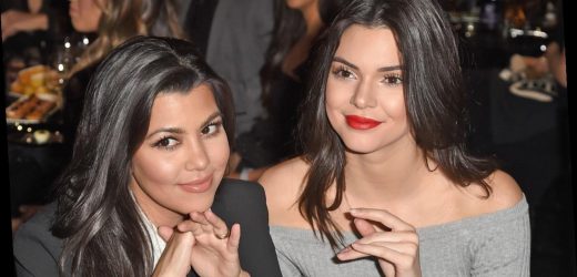 Kourtney Kardashian is sharing a throwback snapshot of her and her sister Kendall Jenner basking in the sunny Los Angeles weather.