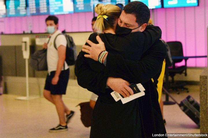 The 42-year-old pro dancer touched down in Los Angeles International Airport on Wednesday, March 2. In photos taken by paparazzi, the pair shared a long, sweet embrace in the airport terminal before walking out together.
