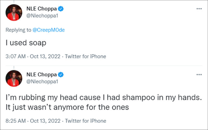After watching the clip, people had some questions regarding NLE Choppa’s hygiene standard. “Did they tell you to use soap?” one person asked. Another similarly inquired, “Did he use soap? Or the ancestors said aht aht? .. I’m confused.” A third remarked, “He just moving the dirt around.”