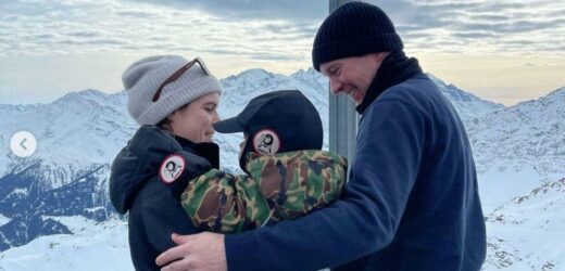In one of the snaps, Eugenie and Jack were cuddling their son as they stood on a mountain slope ready to enjoy a family skiing holiday.