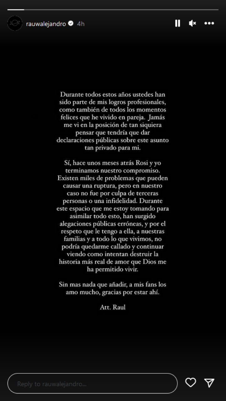 Rauw Alejandro stated that infedility was not the reason behind his split from Rosalia.