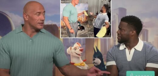 The comedy duo took the trend to new heights (the Kevin jokes just write themselves, LOLz) by performing it while on a press tour for their upcoming film DC League of Super-Pets. Kevin won their game of rock, paper, scissors back-to-back and got to slap The Rock each time! Oooooh, we just KNOW that lit up a fire in Dwayne, who REFUSED to spit out his water, proudly claiming “I win!”