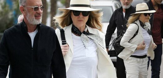 Tom Hanks and beloved wife Rita Wilson cut low key figures arrive at their hotel in Barcelona – after celebrating their 35th wedding anniversary