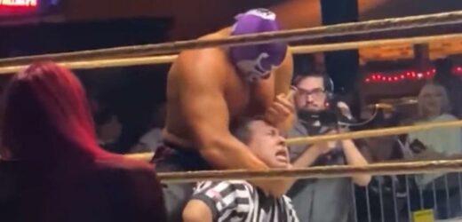 Nicholson, though, did not leave the ring immediately — and, instead, he began fighting with a referee inside the squared circle.
