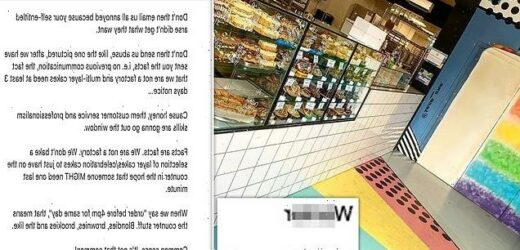 Bakery owner blasts rude and ‘entitled’ customer who called her a ‘w****r’ in furious message after she refused a last-minute cake order