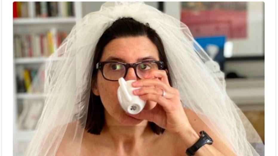 Author Curtis Sittenfeld has started a Twitter movement after posting a photo of herself wearing her wedding dress during coronavirus.
