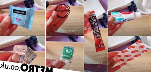 The kits included plasters for sore and tired feet, a sachet of coffee for a wake-up call, toothpaste, hair ties, mints, face wipes and most importantly, painkillers.
