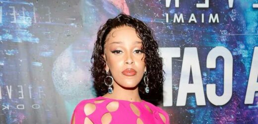 While performing songs on stage from her latest album, Planet Her, Doja slipped on a pile of dollar bills for a now-viral fall that ignited Twitter. Naturally, she recovered flawlessly, but the move did distract people from discussing her truly iconic outfit — which featured some of the biggest summer trends that were also spotted on every runway during Miami Swim Week, fittingly.