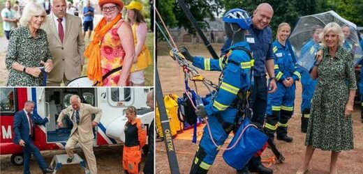 Charles and Camilla toured an open-air display of equipment, vehicles, an all-weather helicopter and even drones used to rescue everyone from sunbathers to sailors around the nation’s coastline