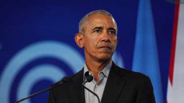 Former US president Barack Obama speaks during day nine of COP26.Credit:Getty