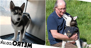 Christine and Steve, 52, were struck by the pup’s ‘intense’ facial expression, and knew they wanted to give her a better life with their three Alaskan Malamutes and three German Shepherds.