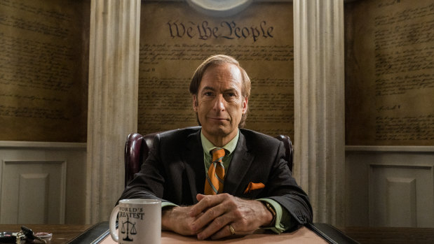 Doesn’t this man deserve an Emmy, finally? Bob Odenkirk could be a bolter for his role as slimy lawyer Saul Goodman in breaking bad spin-off, Better Call Saul.Credit:Stan