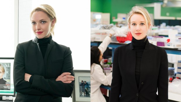 Amanda Seyfried as Elizabeth Holmes in the Dropout (left), and the real Elizabeth Holmes.