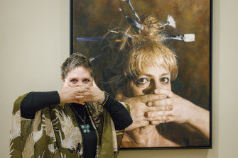 The eyes have it: Darling Portrait Prize winner Jaq Grantford with her self portrait.Credit:Terry Cunningham