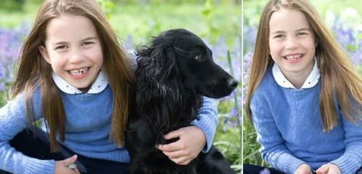 Happy Birthday, Princess! Beaming amid the bluebells, Charlotte celebrates turning seven by posing with the family’s new puppy Orla for flowery photoshoot… with images taken by her mother Kate
