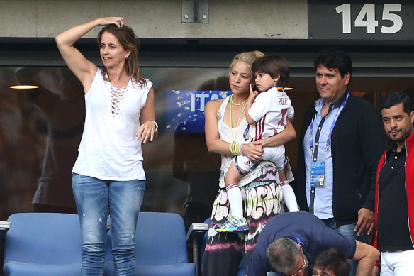 Shakira (centre) with ex-husband Gerard Pique’s mother Montserrat Bernabeu (left).Credit:Getty