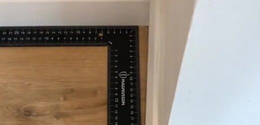 A ruler placed alongside the wall shows the skirting to be totally out of square.