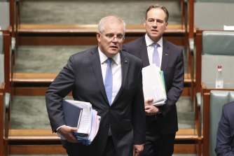 Prime Minister Scott Morrison and Health Minister Greg Hunt.Credit:Alex Ellinghausen