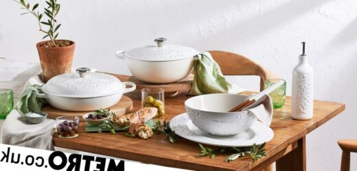 Prices start at £35 for a Le Creuset Olive Branch oil bottle, while the large Signature Soup Pot comes in at £305.