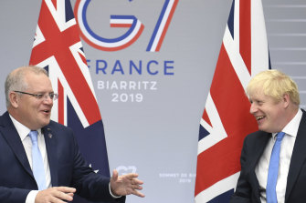 Prime Minister Scott Morrison has been invited by his British counterpart Boris Johnson to attend this year’s G7 where carbon tariffs may be discussed.Credit:PA
