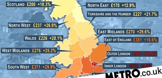 The most expensive region is inner London, with a square foot costing an average of £742. Meanwhile, movers will have to head north for cheaper prices.