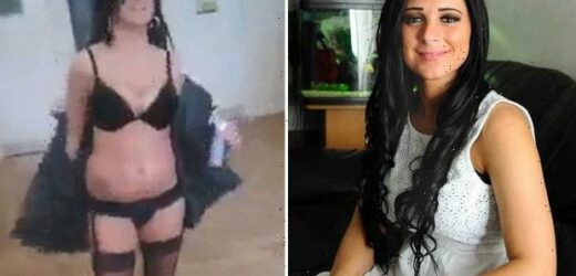 Simone Reed, 27, was filmed marching into the Jobcentre in Stockton-on-Tees where she tossed off her jacket and revealed a skimpy outfit of stockings, knickers and a bra in 2014.
