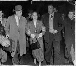 Spy Evdokia Petrov is escorted by Soviet officials to a plane to Moscow on April 19, 1954. Credit:
