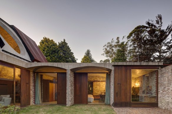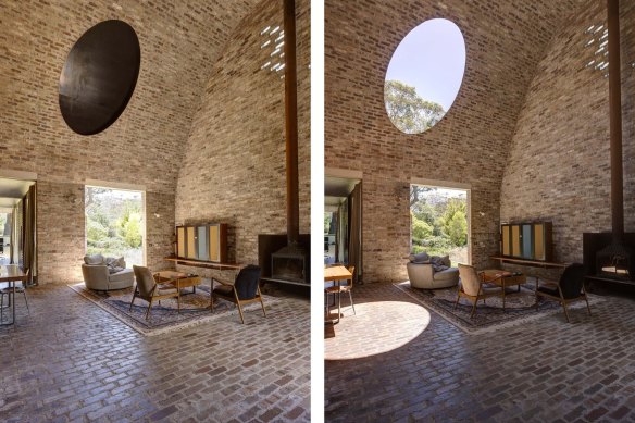 The property in the Blue Mountains – at 6 Jubilee Avenue, Blackheath – is on the market with a guide of $3 million to $3.3 million and features a large oculus in the ceiling, designed by Peter Stutchbury Architecture’s Fernanda Cabral and Sobi Slingsby.