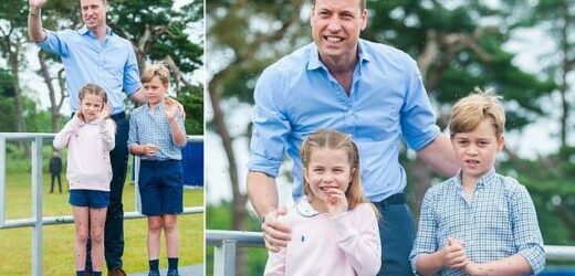 Daddy’s little helpers! Prince George and Princess Charlotte join Prince William to kickstart a half marathon on the Sandringham Estate on Father’s Day – after reports the Duke ‘threw brother Prince Harry out of their joint household’